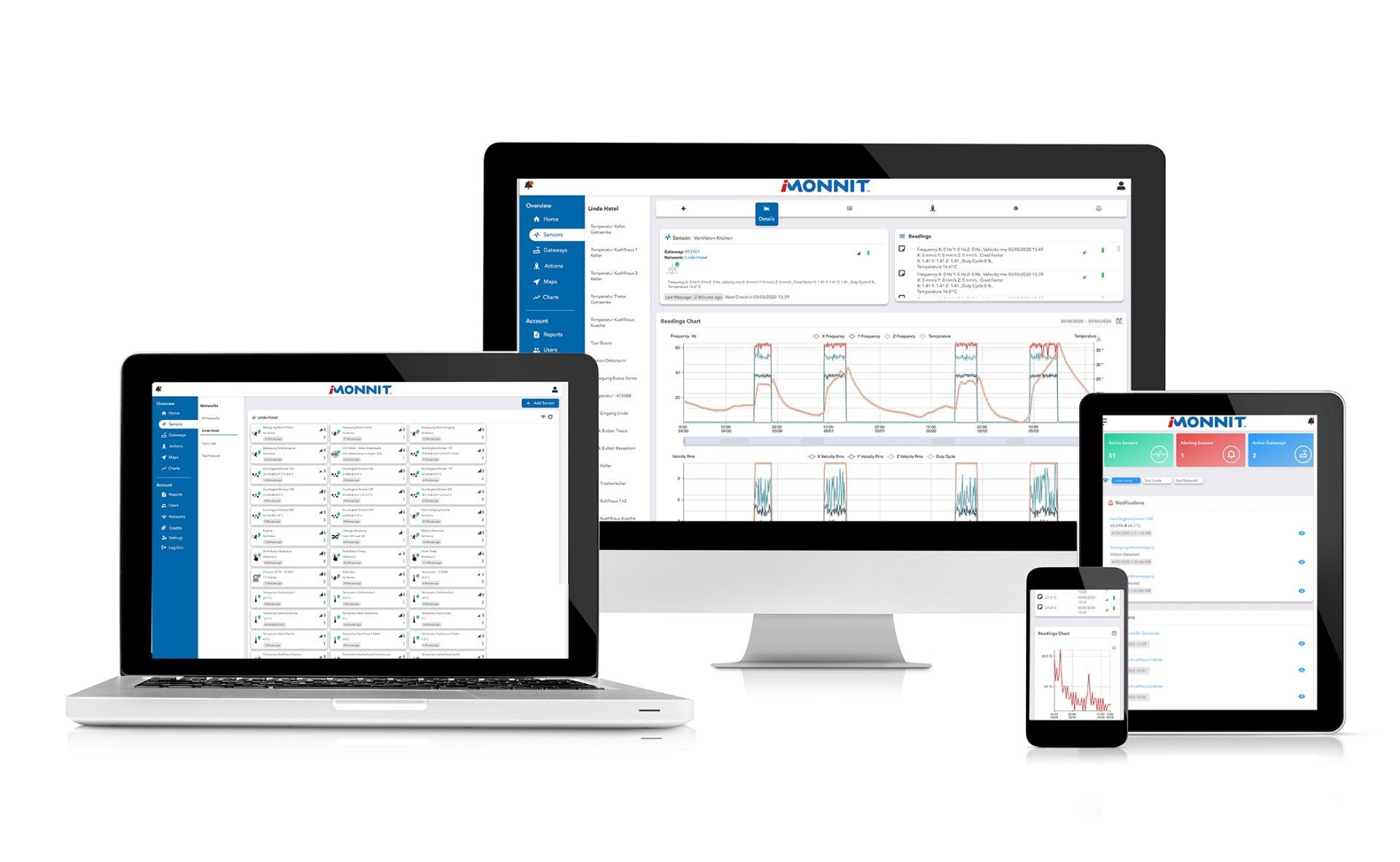 Ansicht der Daten und des Sensorsystems von überall auf dem PC oder auf dem Handheld.